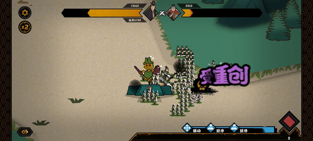 例如夏商周的黎,技能卡效果是枪兵启动远程打击。这类技能卡的伤害来源在于部队数量和地点放置,部队数量越多伤害越高,敌军越密集伤害越高。