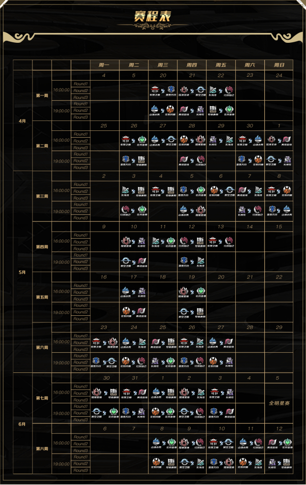 武神坛巅峰联赛S4赛季分为常规赛和季后赛两个阶段,常规赛将于4月20日-6月12日进行,12支队伍分别进行十一轮、每轮3局的循环积分赛,共计36个比赛日鏖战不停!常规赛积分前8名的战队,将获得晋级季后赛的资格,而季后赛将于6月30日-7月3日进行,并采用更加激烈的双败淘汰制,直至决出武神坛巅峰联赛S4的总冠军!征程再启,是传奇再续,抑或是新王当立,且让我们一同见证!