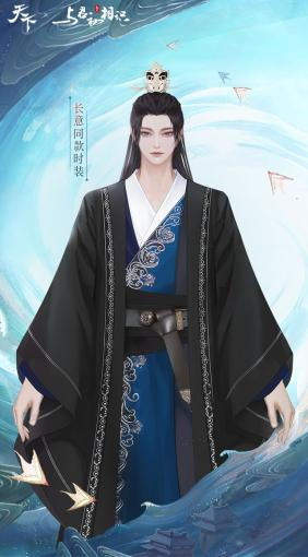 黑衣凝水魄,披发凛双眸。长意同款时装外罩一领黑色长袍,边缘处装饰以银白云纹,充满神秘而肃穆的气息。湖蓝色内衬的前襟处,也以银线勾勒出精致典雅的鲜花与波浪图案,搭配上利索干练的黑皮腰带,雍容典雅的贵公子形象呼之欲出。