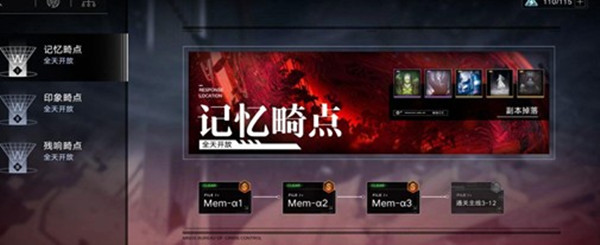 1、绣河中一共有五个玩法,清剿行动,帕尔马废墟,记忆风暴,污染之巢,难度越高奖励越多,一个关卡固定消耗二十的体力;
