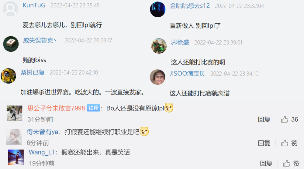 LPL观众坚决抵制BO复出,还有人喊道:“打假赛的还能打职业就离谱,等他打进世界赛直接吃波大的!”可见BO到底对LPL联赛造成了多么大的伤害,观众至今都不愿原谅他,即使天赋再高实力再强也要和他划清关系!