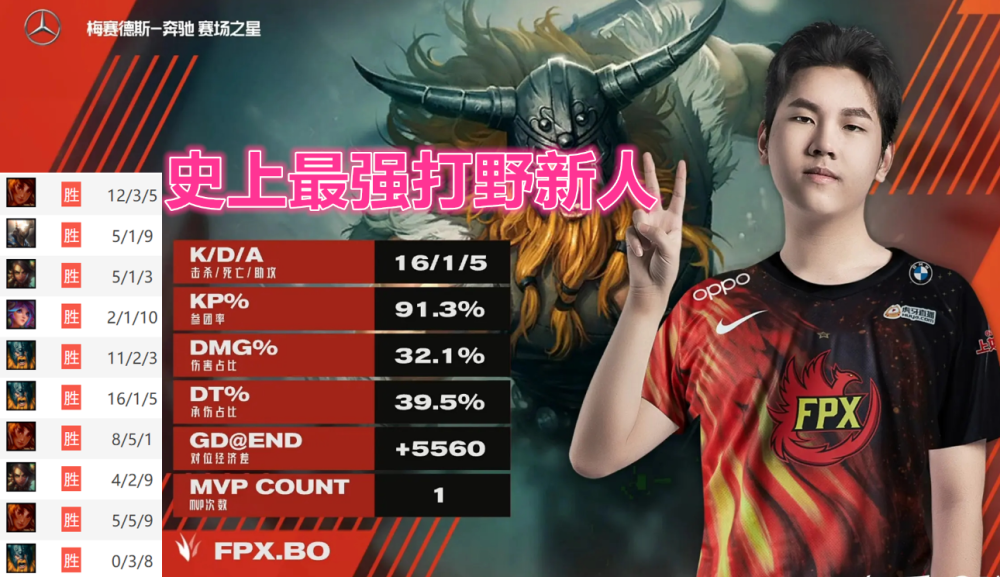 英雄联盟打野选手BO曾是LPL联赛史上表现最为亮眼的打野新人,去年春季赛首秀带领FPX战队夺得十连胜,几乎每一把都是乱杀局,豪华数据让人叹为观止,甚至还创下了LPL打野位置单场最高击杀纪录,这个纪录直到前几天才被V5卡萨打破。当时网友都觉得BO的能力比小天还强,他要成为LPL新生代打野的希望!