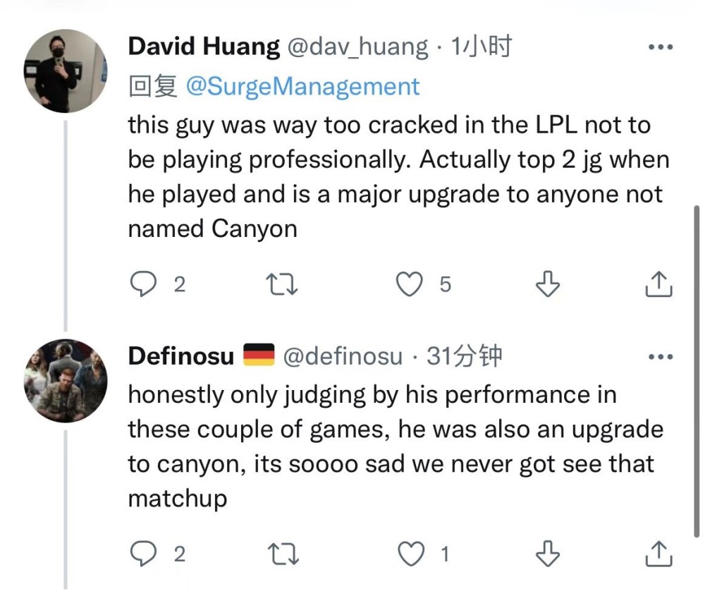 在这条官宣Bo加入的消息下方,很多海外网友还是非常支持Bo的,他们认为Bo是世界前2名的打野,而且是canyon的升级版,很多人还是非常期待可以在赛场上再次见到Bo的。