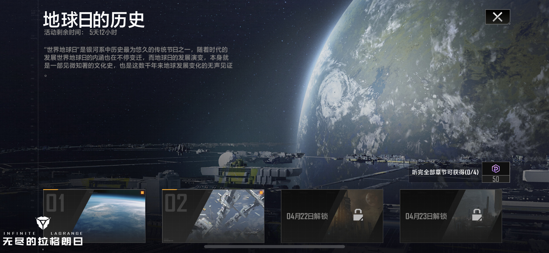 回顾历史,穿越时空,此刻所有开拓者共聚在同一个星球。《无尽的拉格朗日》世界地球日活动现已开启,邀请开拓者们前来感受这个经典节日,通过星门聆听节日钟声,感受丰富多彩的地球圈文化。