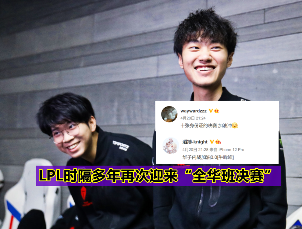 说实话,这次RNG、TES这两支全华班打进决赛,虽然只是春季赛,但也同样告诉所有人,现在的国产选手同样有着非常强的实力,就连TES的wayward、knight在他们确定队伍进入决赛之后,也是发微博祝贺加油,虽然最终只能有一支队伍成为冠军,可这场10个中国选手的决赛,狗子我已经期待很久了。