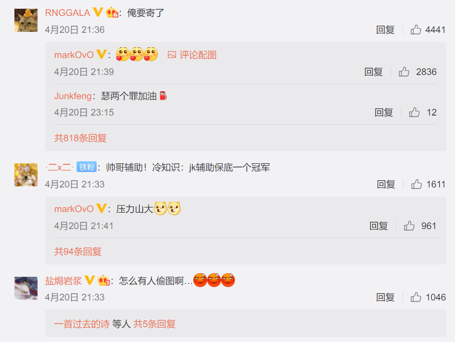 不过由于是第一次打进决赛,Mark竟然是直接把JackeyLove的图给偷了过来,但最搞笑的是,评论区竟然出现了大型“车祸现场”。