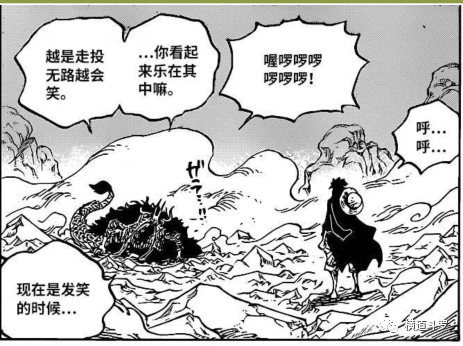 罗守护在重伤索隆身旁发现宙斯脱困,含情脉脉对路飞说,如果宙斯回到大妈身旁,情况就更加糟糕了,我要把其他人送下去。路飞言简意赅一个好字回应罗,倒地的凯多愈发欣赏路飞,对其夸赞越是走投无路,你看起来乐在其中,路飞人生信条,就一个字乐观。