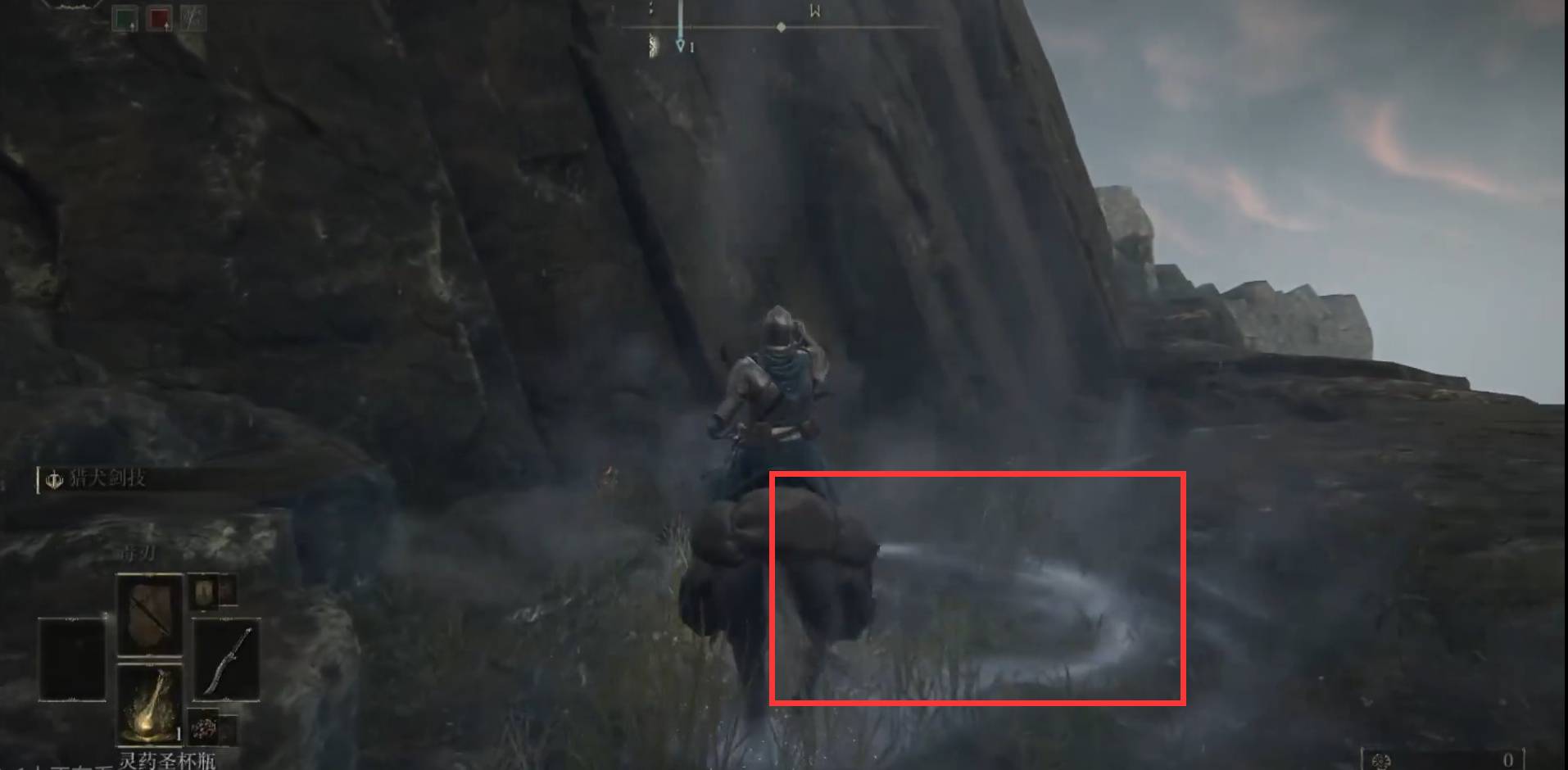 2.往前走到下图这个地点可以操作飞上去。