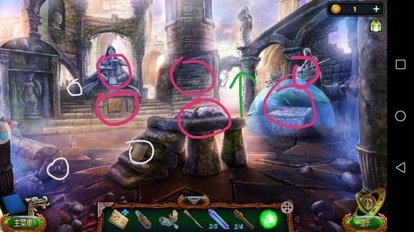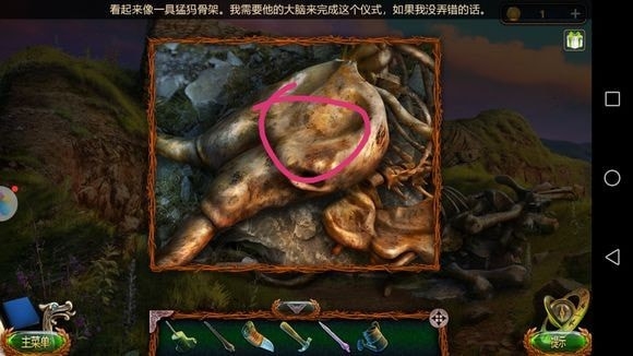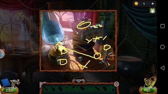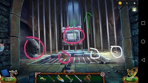 箱子——放手——梯子横杠④、骷髅碎片、放大镜、描图纸