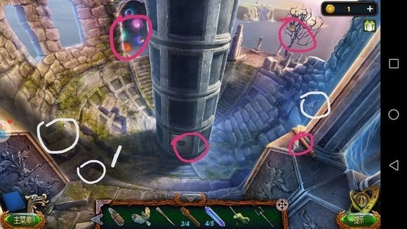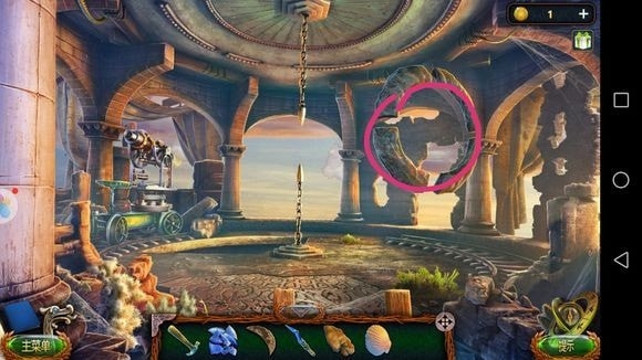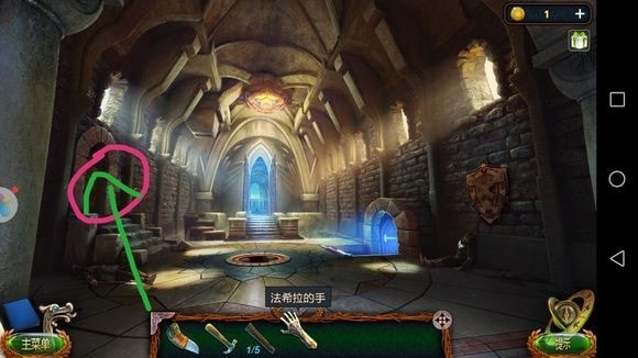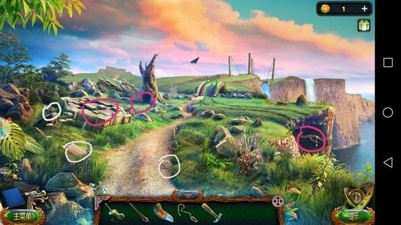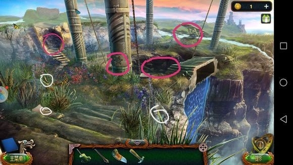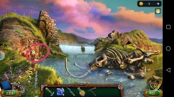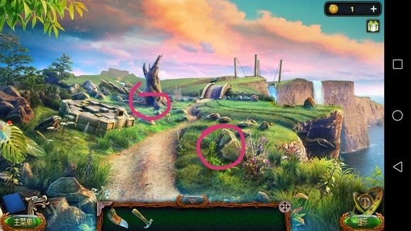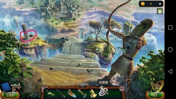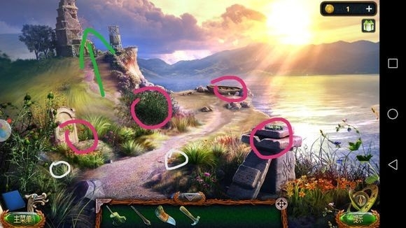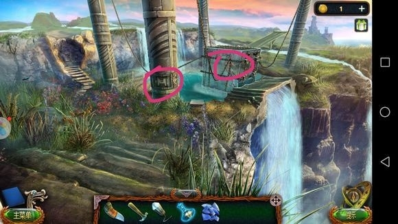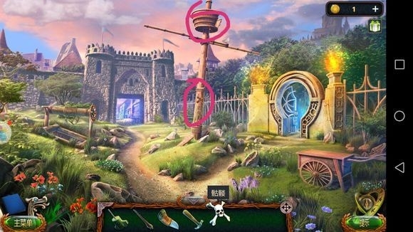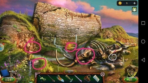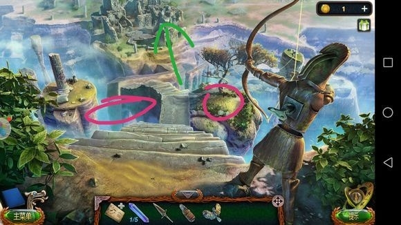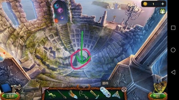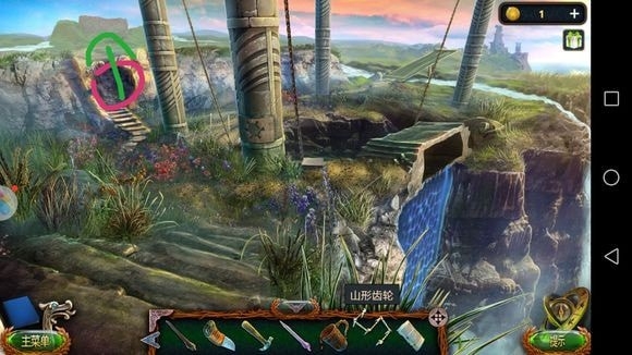 左边圆形山壁——用山形齿轮、锤子?——上到山顶石墙