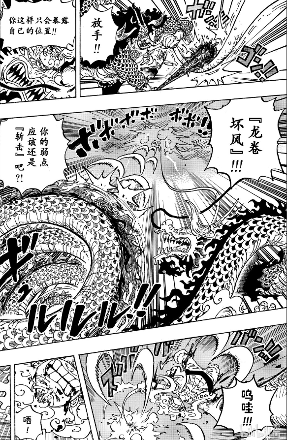 凯多见路飞抓着自己地胸口,他知道路飞是不想让自己躲避,于是使出浑身解数想让路飞放手。路飞能力有斩击的弱点,为了打断路飞的蓄力,凯多疯狂使用斩击,企图将路飞逼下来。