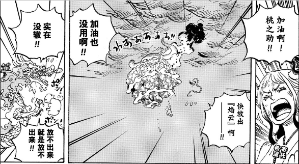 由于凯多要拿出全力对付路飞,支撑着鬼之岛焰云逐渐消散,大家都期盼着拥有和凯多相似能力的桃之助能释放出焰云撑起鬼之岛,以免其坠落。