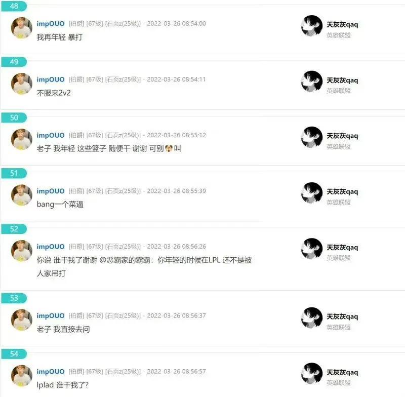 比如说前段时间imp在直播间的弹幕言论,表示小吕布、bang都很弱,自己随便能吊打,lpl的ADC也都没有自己厉害。