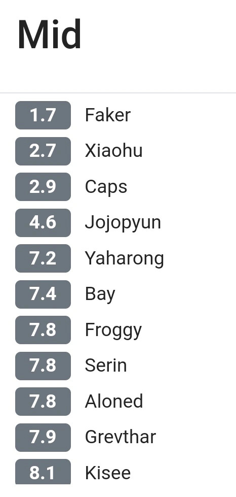 中单位置的结果就更没什么好猜测的了,Faker以压倒性的得票排名第一,第二名是RNG的小虎,第三名才是他们自己赛区的caps,第四名是Jojopyun,第五名是yaharong。