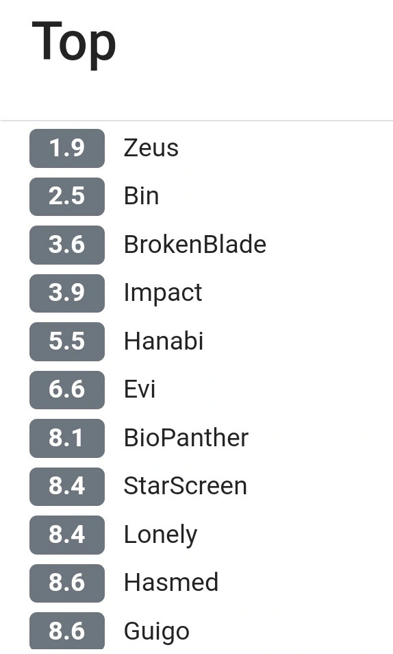 具体结果如下,首先是上单位置,海外网友认为MSI最强上单是T1的zeus,第二名是Bin,第三名是BrokenBlade。然后是impact和Hanabi。