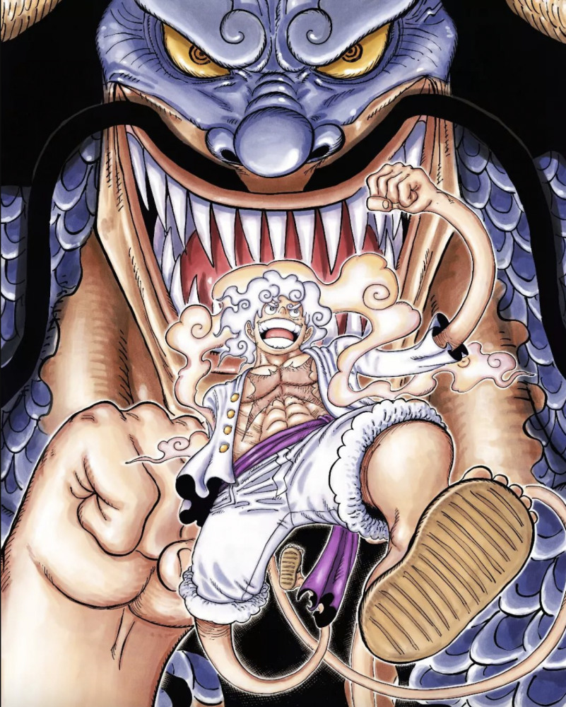 目前路飞的五档使用的新招术“橡胶橡胶 雷”, 表明路飞现在兼容了“火”“雷”两种属性,而像凯多只有单一风属性,大和也只有冰属性。