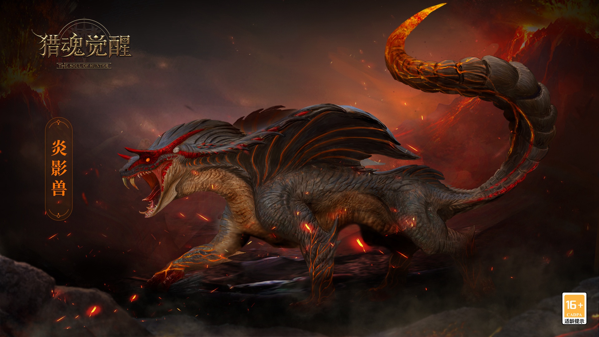 影蛇兽的亚种,炎影兽循着火焰的气息一路从绝境沙漠前进到火山。炎影兽原本存储于腺体内的毒液已经转化为岩浆,尾部的弯钩为了可以顺利攫取地热之力而变得更尖,颜色也因长期受到岩浆包裹而产生了变化。身上的鳞甲变得更为光滑,流线型的线条可以帮助炎影兽在地底中肆意穿梭,在岩浆中遨游。每一次攻击都伴随着火焰之力的爆发,似乎要将一切吞噬,让所有阴影都无处遁形。