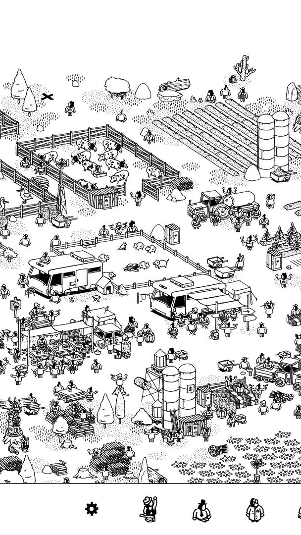 如果你觉得这款入门级的找茬游戏过于简单,那么不妨来试试这款难度更高,更加偏向考验眼力与线索搜寻能力的大场景找茬游戏《隐藏的家伙》。(又名《Hidden Folks》)