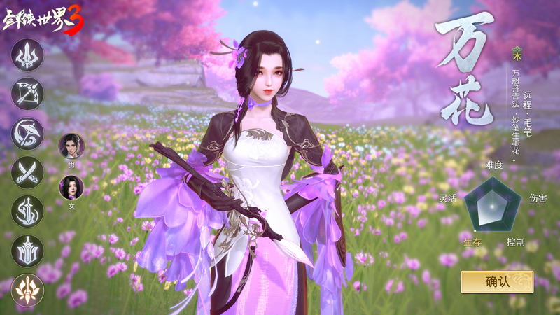 天下笔武,行云流水!《剑侠世界3》第七大门派“万花”今日正式登场。作为全新木系门派,万花主张以笔为武,水墨晕开间,既有翰墨文人风雅之姿,亦有笔武撼江湖的畅意潇洒。同时技能主张以莲为形,具有怒幽双形态,在战斗中既可为队友提供治疗,清除负面状态,亦可怒叠莲花印记,释放高爆发伤害。真可谓是攻守兼备,相信当万花加入团队,定能带给诸位少侠全新战斗体验!