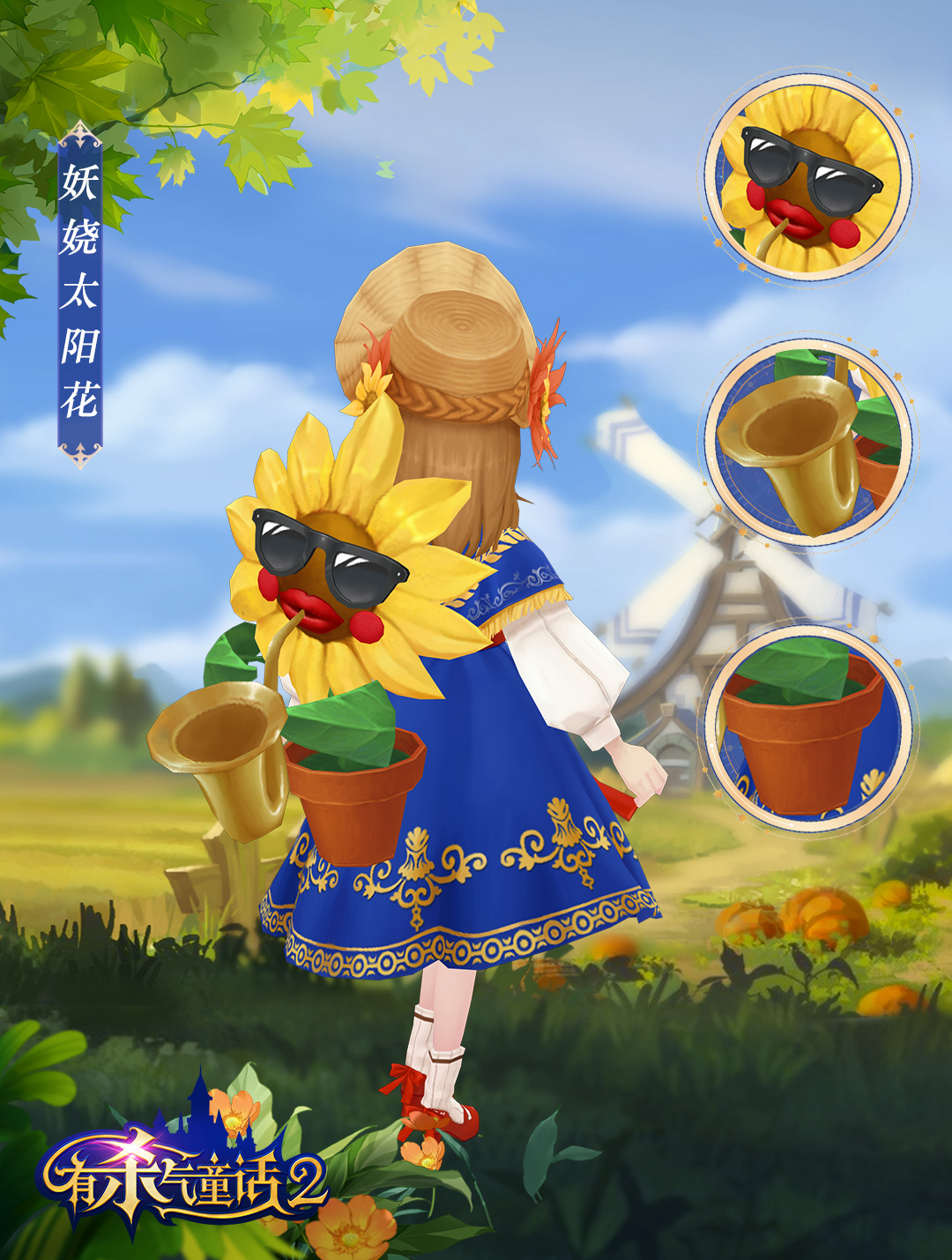 穿戴上劳动节限定背饰“妖娆太阳花”,头饰“锦簇花环”,体验一番童话的劳作吧~