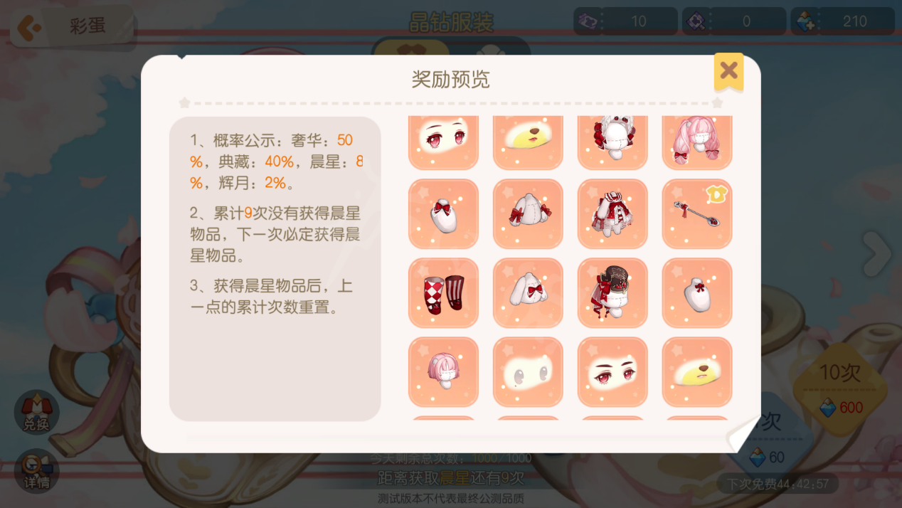 这不,不可避免的抽卡环节它来了,游戏中做工精细,造型华美的衣服和配饰基本都只能通过抽卡来获得,论美术质量还是很不错的,各种风格的衣服也都略涉一二,只是这爆率嘛,不过这是因为我无力供给抽卡基数造成的问题,不能把自己的锅都推给游戏。