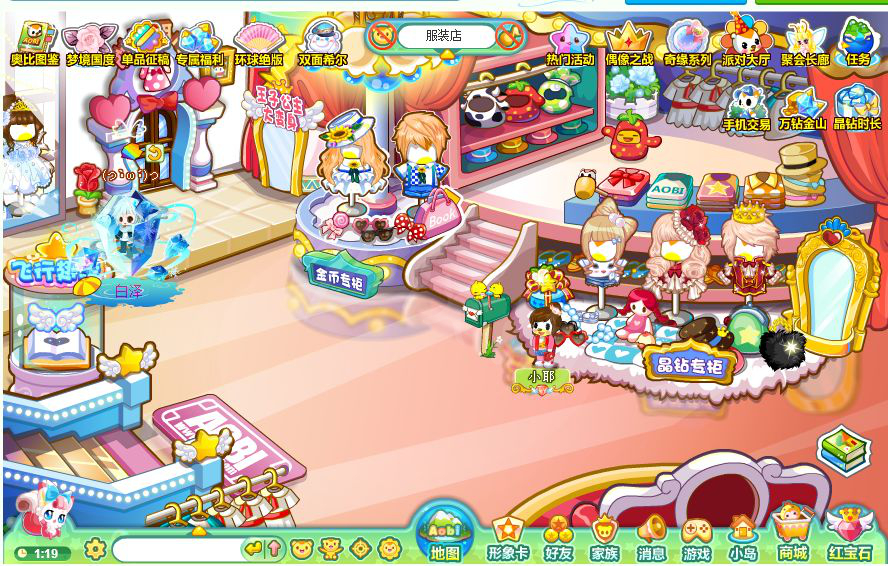 在我为数不多的印象中,最初的奥比岛是以“聊天社区”的形式存在的,玩法内容十分丰富,站在一名普通玩家的角度来说,可以在其中探索地图,玩小游戏,装扮家园,妆点角色,聊天交友等,尤其是游戏中的地图交互部分,在一张地图上通常会有数个可交互的物件,有的还存在一定的逻辑解密关系,小游戏部分也博览众长,并且所有的活动都可为玩家积累游戏金币,逐步积累起在游戏中的“财富”。