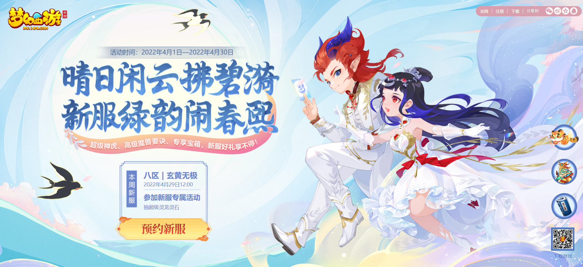 《梦幻西游》手游4月29日双平台新服【玄黄无极】即将开启,扫码即有机会获得彩小驴坐骑、高级魔兽要诀、超级灵龙灵石等多重好礼。快来新服游戏,领取丰厚奖励吧。