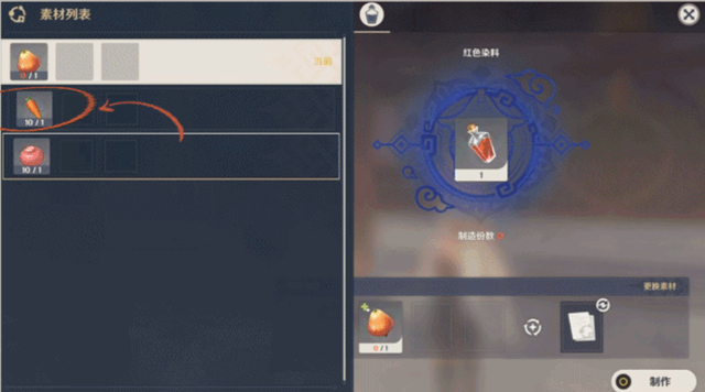 染料制作素材的更换!虽然刚刚上线,但是玩家应该也都知道要制作尘歌壶中的染料,需要玩家收集大世界的各种材料。虽然这些材料都非常的常见,但为了防止有些玩家没有足够的储备。官方的染料制作是可以更换制作素材的,也就是说玩家可以用不止一种材料做出染料。比如下图的这个【红色染料】,用日落果,胡萝卜以及落落梅都可以做出来,玩家可以从三种制作材料中任选其一用来制作红色染料。