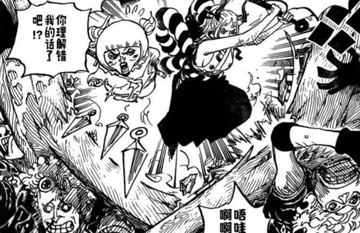 另一方面是关于桃之助的画面,这里大和为了不让凯多部下的人继续追杀他们,于是大和心生一计,大和做了个看起来很可爱,但显然是假的桃之助假人,她会随身携带它并充当诱饵。让桃之助可以脱离危险,桃之助也感受到看顶楼的情况,只有路飞和凯多两人的气息了。