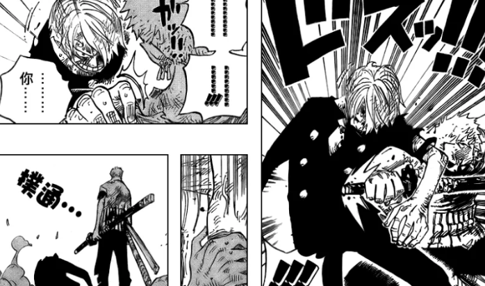 而罗也出现了,这时候的罗就跟山治说,索隆体内约20-30 块骨头都断了,所以山治应该先治疗索隆的伤口。于是山治把索隆绑在木头上,给他缠上了超多绷带,让索隆看起来像一个巨大的十字架,背着索隆一直逃跑。
