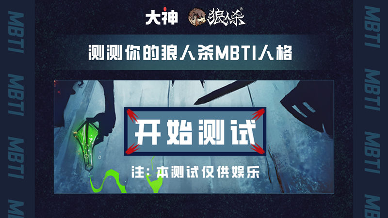 4月28日至5月10日期间,玩家们可上大神APP内《狼人杀》圈子或点击下方链接前往测试主页参与测试。通过10道涵盖现实生活、潜意识心智、狼人杀打法等多角度的必须题,多维度探寻深层次的自我,得出你的狼人杀MBTI人格,在线解析你独特的狼人杀打法!