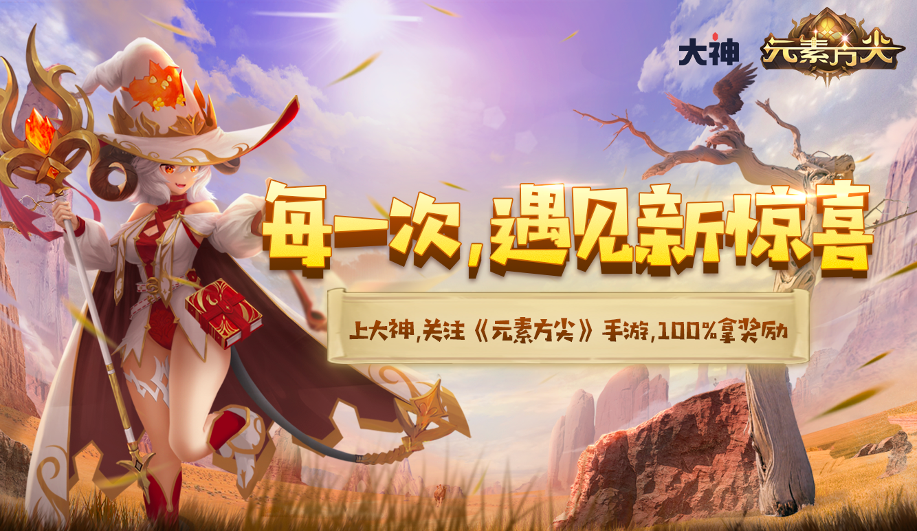 登录大神APP搜索“元素方尖礼包码”,赢“元素方尖 x 大神”专属礼包,助力各位「勇者大人」踏上新的旅途!