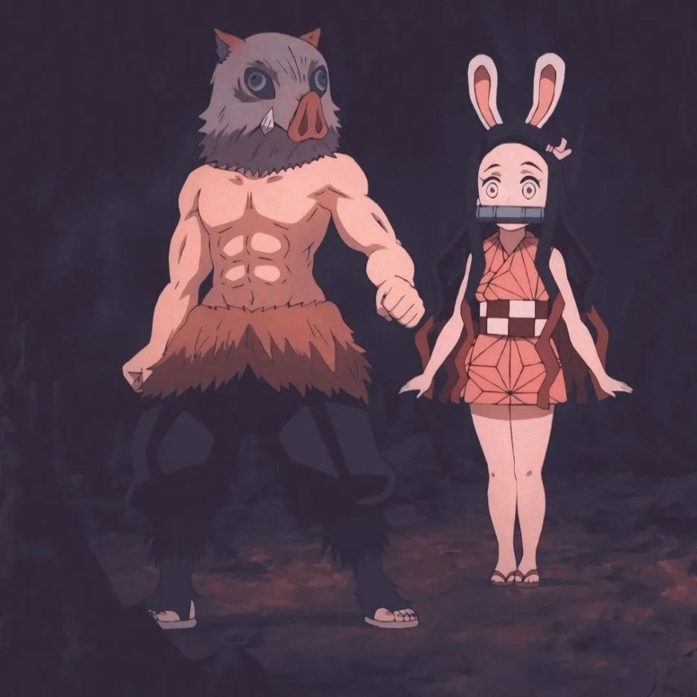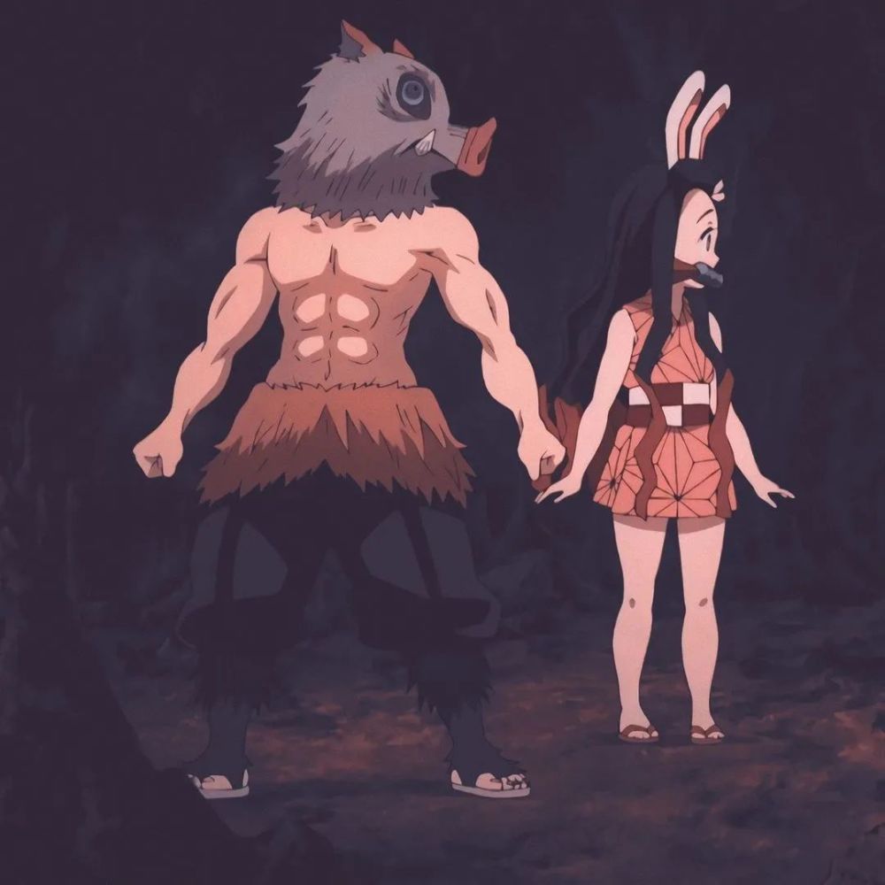 《鬼灭之刃》灶门祢豆子和嘴平伊之助,这个组合特别可爱