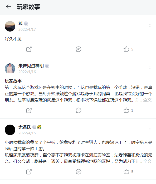 进入4月,官方还在微博、B站、TapTap等多个平台发起玩家故事征集活动,很多老玩家踊跃参与,分享自己和时空猎人之间的美好回忆,在评论区留下了许多感人的玩家故事,相信在未来还会有更多新老玩家,加入阿达拉星球。