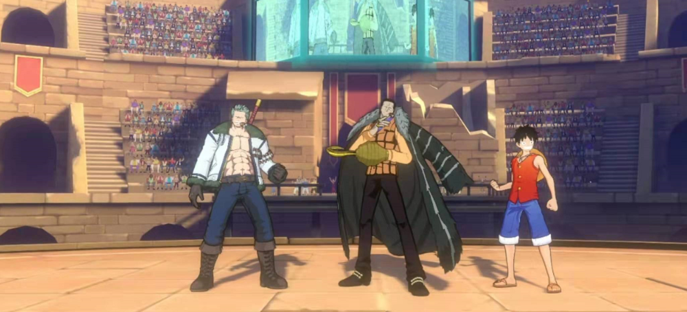 前面说到,游戏开篇会有一段超然的《航海王》CG,同样游戏中也会穿插着出现一些零散剧情的动画。但是这部分动画明显与开篇时候的拥有天差地别:带有黑边,大部分都是直接截图,画质看起来非常粗糙。就算《航海王热血航线》不是专门给玩家看故事剧情的地方,也还是希望动画可以做得精致一些。