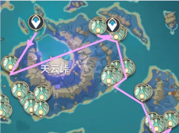 从打雷音的锚点向下直接飞到南边小岛,清完小岛后用岛上的相位门传送到西侧,西侧全打完用雷种子飞回天云峠中心岛。