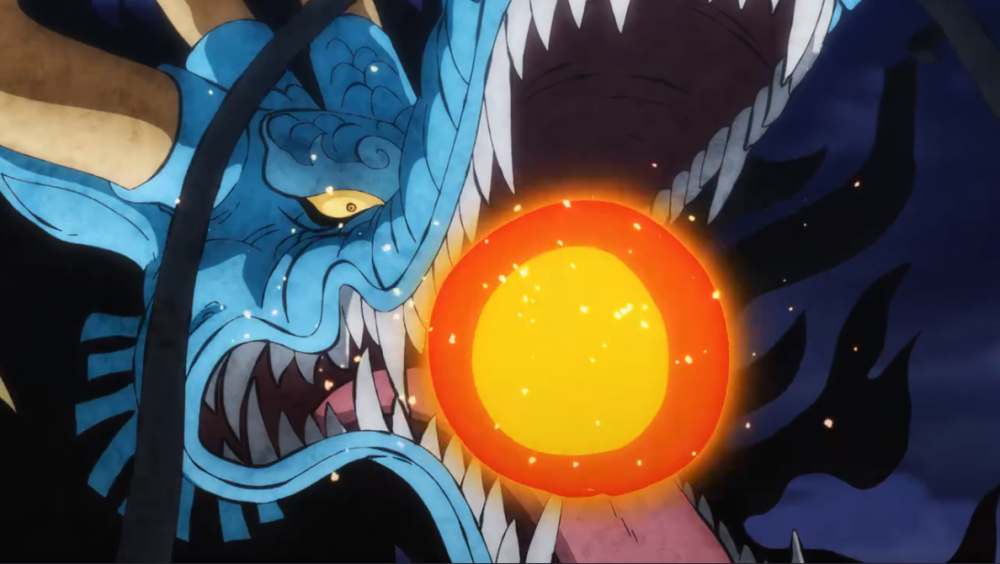 画面中可以看到,御田是硬接下了一招“热息”,然后才冲上去砍伤了凯多。热息的威力也很大,看起来御田整个人都变形了,当然这是动画的效果,不过有一点可以肯定,御田一定释放了霸气,而且不是一般的霸气。毕竟在海贼王的世界中,霸气和恶魔果实一样是特别的设定。很多恶魔果实的能力就只有靠霸气来化解。