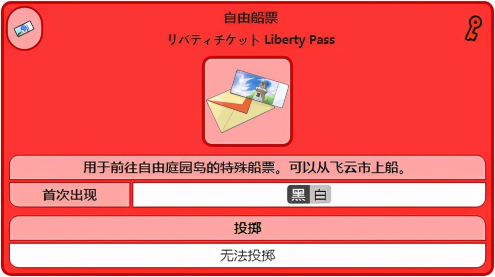 自由船票是众多道具中的其中一种,它是第五世代的重要道具之一,且可以用来在飞云市的自由码头乘船前往自由庭园岛;如果主角没有船票,船就会一直停在港口;自由船票是《黑/白》唯一一个活动赠送道具;如同GameStop的代欧奇希斯,欧洲地区的游戏零售商店在2011年3月4日至4月27日以编号为NTR-Y8KP-EUR的专用游戏卡进行自由船票的活动赠送,而后该编号游戏卡被违规二次销售,后成为第五世代“自定义活动赠送程式”雏形,在第五世代的活动赠送中,为了防止和GameStop的代欧奇希斯一样出现大量游戏卡违规销售,所有的游戏卡都有独立编号(图中被涂白地方),以便可以追查每一张游戏卡的去向,但仍然有大量游戏卡流入了二手市场。