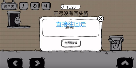 2、关卡中提示说开弓没有回头路,那么我们往回走。