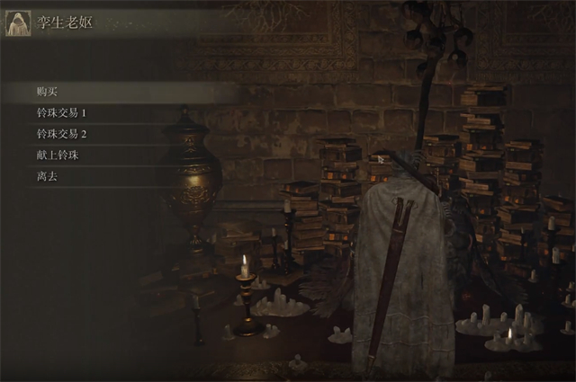 2、传送到大赐福之后,经过圆桌大厅找到npc——孪生老妪,与她对话点击购买;