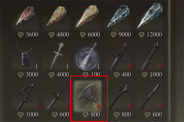 3、然后在道具列表中可以看见战斧,购买战斧需要800卢恩。