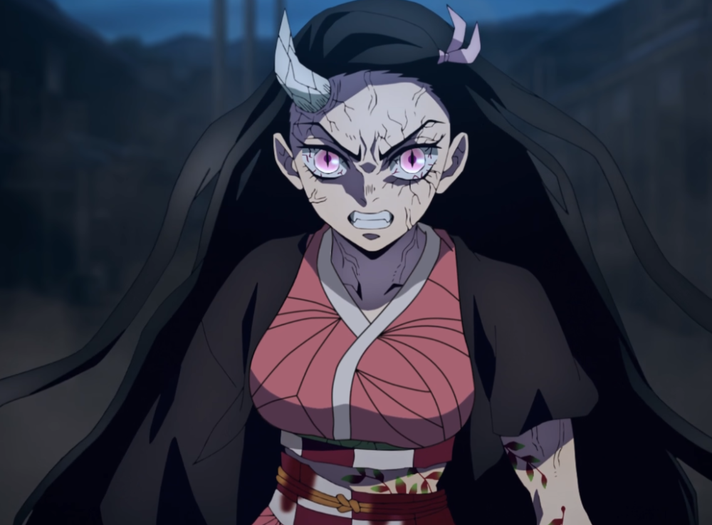 弥豆子的造型,这个无需多言和赘述,早就知道改了,花街篇是唯一一次弥豆子完全的彻底长大成人的鬼化状态,之后打半天狗就是少女化了,不是完全的鬼化,结果胸口最大的特色国内给裹了个严严实实,这个早就有心理准备了,毕竟音柱三个老婆的衣服外带堕姬的造型国内都魔改了,这没啥好说的,但是把弥豆子标志性的衍生出来的柳叶都给遮盖了,这就很难受了。