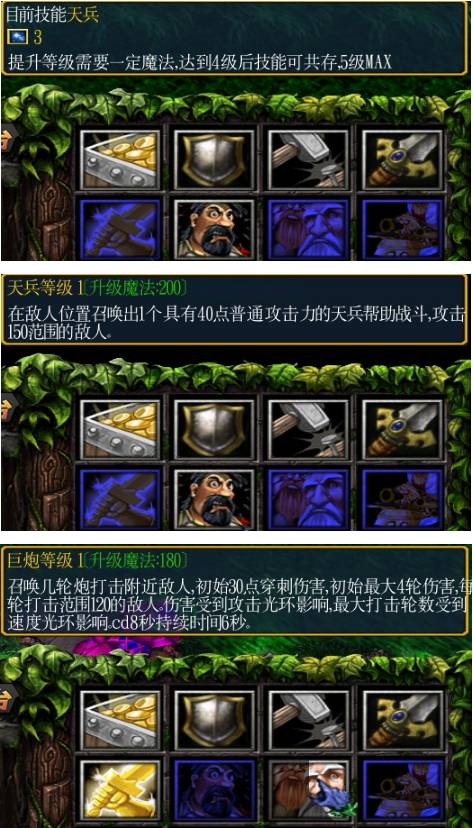 1、天将塔是个老挂机塔了,玩法比较固定。先看技能把。技能天兵、提高等级需要定魔法达到4级后技能可共存5级MAX。天兵等级1通攻击力的天兵帮助战斗,攻击150范围的敌人。巨炮等级1召唤几轮炮打击附近敌人初始30点穿刺伤吉初始最大4轮伤害,轮打击范120的敌人伤害受到攻击光环影响最大打击轮数受到速度光环影响,cd8秒特续时间6秒。