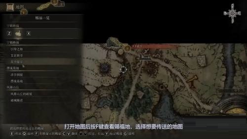2、打开地图后按F键查看赐福地,选择想要传送的地图。