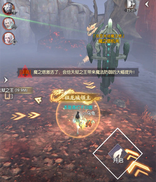 boss技能-炼狱之塔:每隔一段时间炼狱之塔会被激活,为天狱之王带来防御增益,可被关闭。