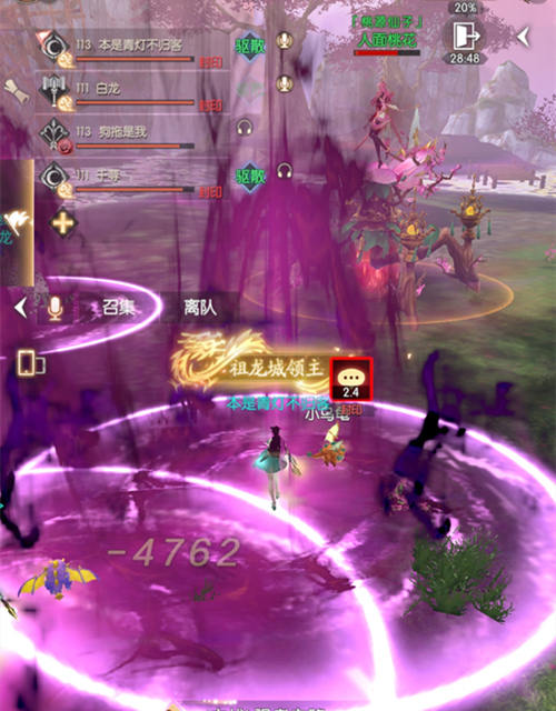 boss技能-新生:人面桃花会随机选择一个目标为其附加【新生】效果,体积变大伤害提高,可摧毁凋零龙卷风。