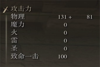 战技锤的基础物理属性有131点,还是比较高的,力气的加成可以达到C,还是非常不错的一个武器。
