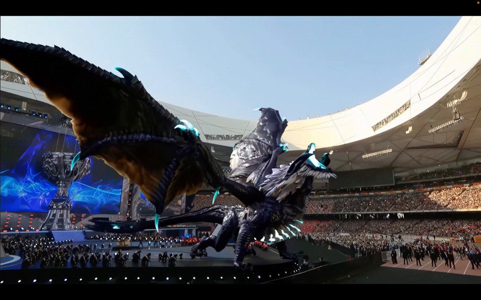 2017年《英雄联盟》S7世界赛总决赛开幕式,召唤师峡谷中的远古巨龙降临鸟巢。(资料图/图)