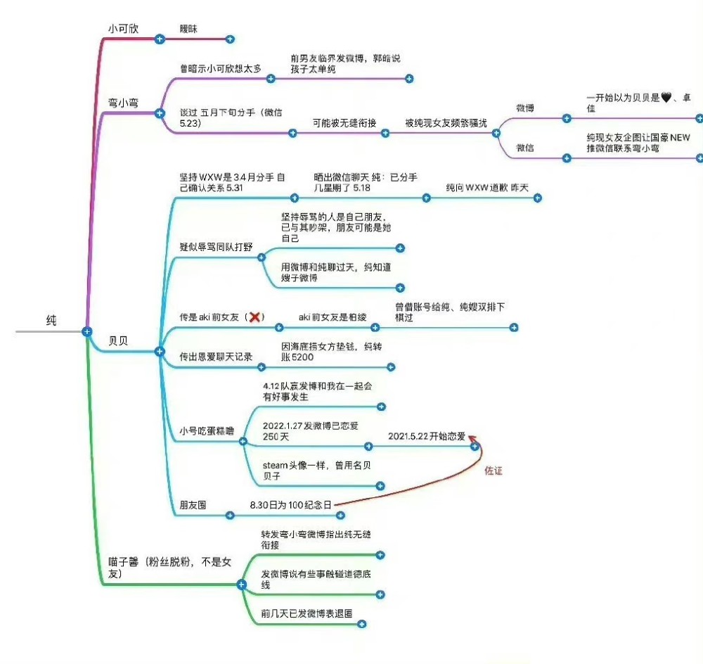 Knight在纯情人设被打破之后,粉丝们细细深究之后,发现事情其实并不简单,最近Knight也曾在直播中表示自己有女友,众多女粉丝也是瞬间感到心碎。在这场互撕事件发生之后,大家仿佛看懂了Knight为何直播公开有女友,大概是已经预料到后续两位女友会发生冲突了,而结合网络中曝出的思维导图,大家才发现事件似乎并不简单,其中不只是涉及到弯小弯和贝贝,Knight妥妥地时间管理大师。