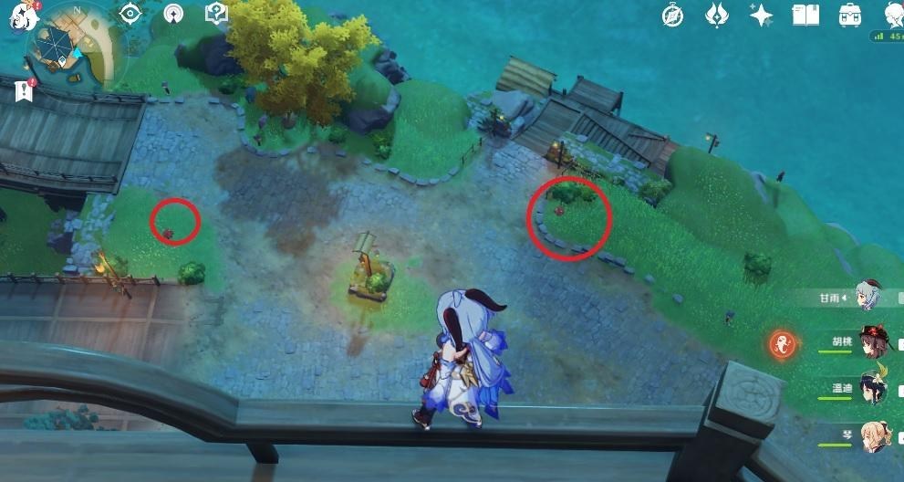 从这个点往璃月港跳,下去京玉台,绕一圈有10多朵倪裳花。